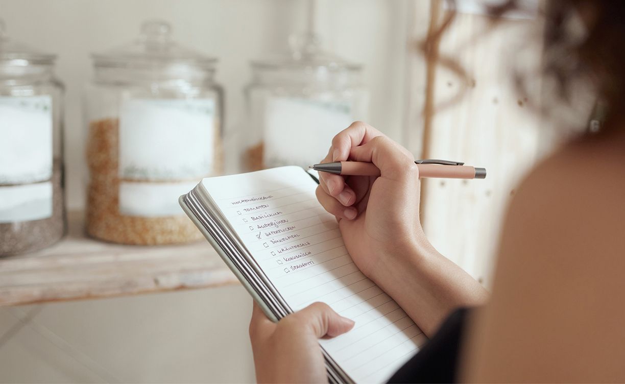 Eine Einkaufsliste hilft dir, gezielt einzukaufen. So vermeidest du Spontankäufe, die später im Müll landen. Produkte mit nahendem MHD lassen sich gut in deinen Wochenplan integrieren – zum Beispiel für schnelle Gerichte oder Snacks.