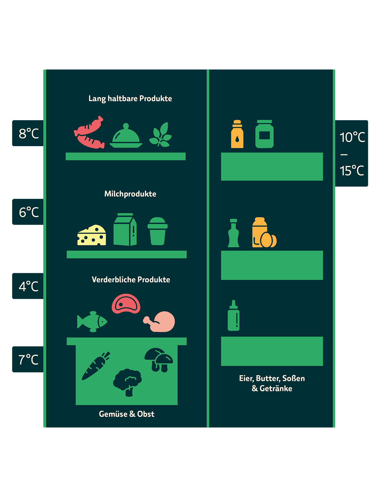 Das liegt an der Luftzirkulation: Warme Luft steigt nach oben, kalte sinkt nach unten. Deshalb ist es oben am wärmsten, unten am kältesten. Zusätzlich gibt es spezielle Zonen wie die 0-Grad-Zone oder die ChillZone, die für empfindliche oder besonders verderbliche Lebensmittel optimiert sind.