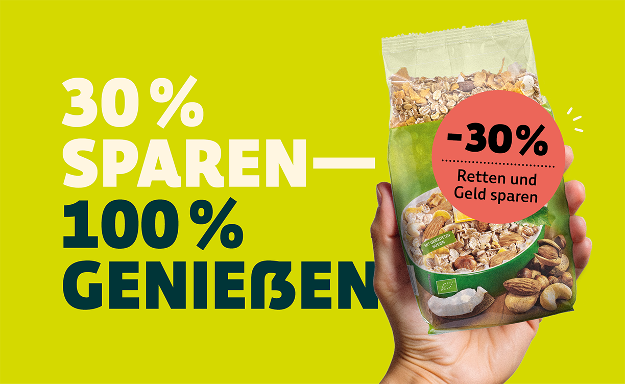 Bio-Lebensmittel, deren Mindesthaltbarkeitsdatum (kurz: MHD) bald erreicht ist, sind oft noch lange gut. Deshalb bieten wir diese Produkte mit 30 % Preisnachlass an. Du erkennst sie am Aufkleber im Markt. So hilfst du, gute Lebensmittel sinnvoll zu nutzen. Und sparst dabei Geld.