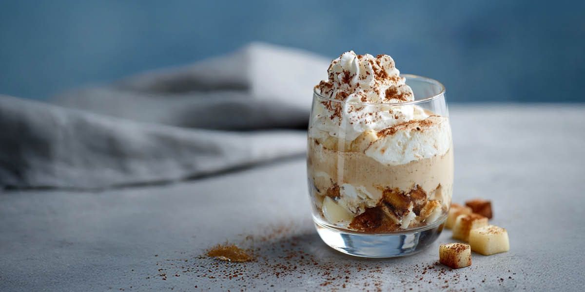 - Alles im Glas schichten: Apfel → Quarkcreme → Crumble. Mit etwas Zimt bestäuben.